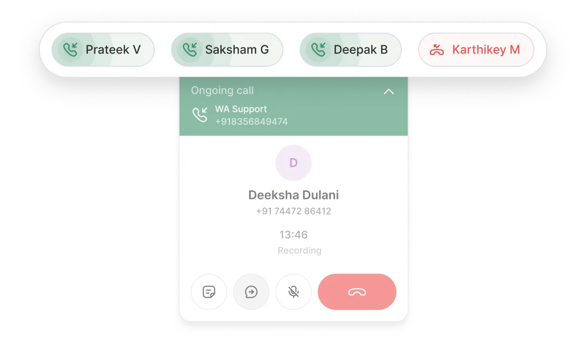 Handle multiple incoming and outgoing WhatsApp calls simultaneously, so high-intent customers never wait.